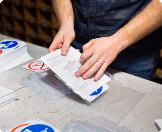 La mise en kit de différents adhésifs sous gaine permet de rassembler la signalisation complète d’une machine pour simplifier la pose à vos opérateurs.